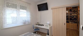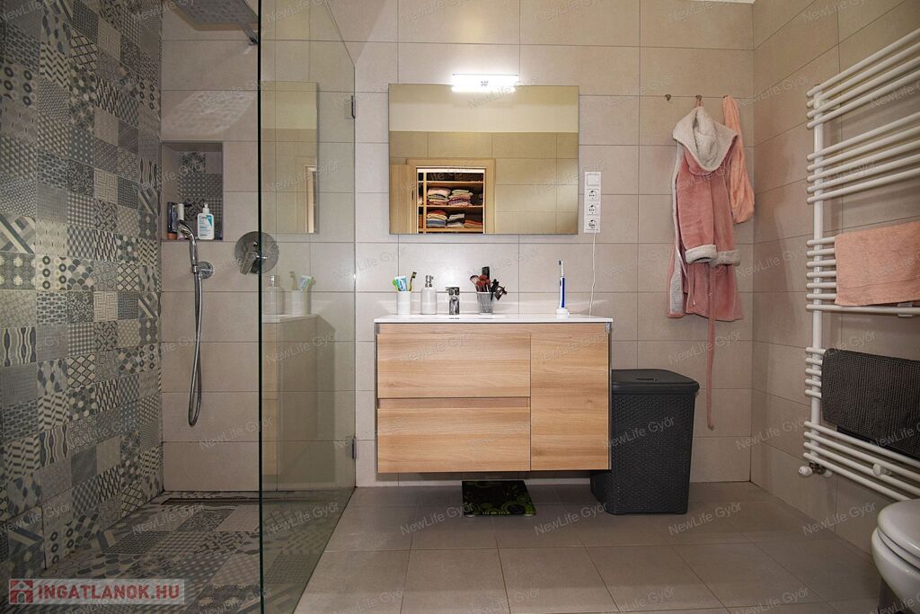 - szülői szárny: hálószoba gardróbszoba kapcsolattal, privát zuhanyzós WC-s fürdőszobával, - háztartási helység, előszoba, vendég WC kézmosóval, garázs