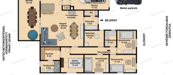 A ház letisztult, kényelmes, jól bútorozható, minden igény kielégítő. Átgondolt az elosztása, akár egy 3 gyermekes családnak is kényelmes, itt mindenkinek saját szobája lehet.