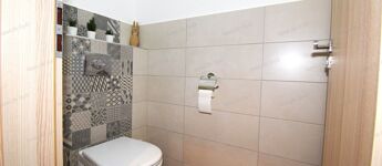 Burkolatok: magas minőségű járólap, szobákban lamináltparketta.