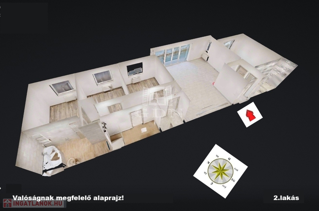 - Elrendezés: 4 hálószoba + nappali + 2 fürdő + kamra + háztartási helyiség