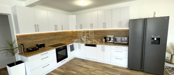 RÉSZBEN BÚTOROZOTT állapot, MODERN konyhabútorral, gránitlapos mosogatóval, beépített, ALACSONY ENERGIAIGÉNYŰ konyhai gépekkel (elektromos főzőlap- és sütő, mosogatógép).