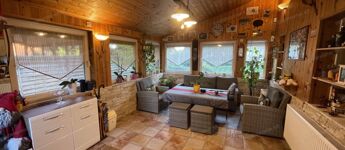 Hangulatos fedett terasz, közvetlen mellette épített bográcsozó – tökéletes családi és baráti összejövetelekhez