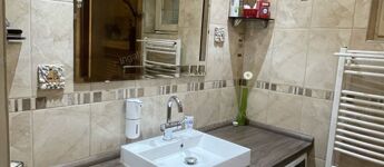 2 fürdőszoba: földszinten zuhanyzós, emeleten kádas.
