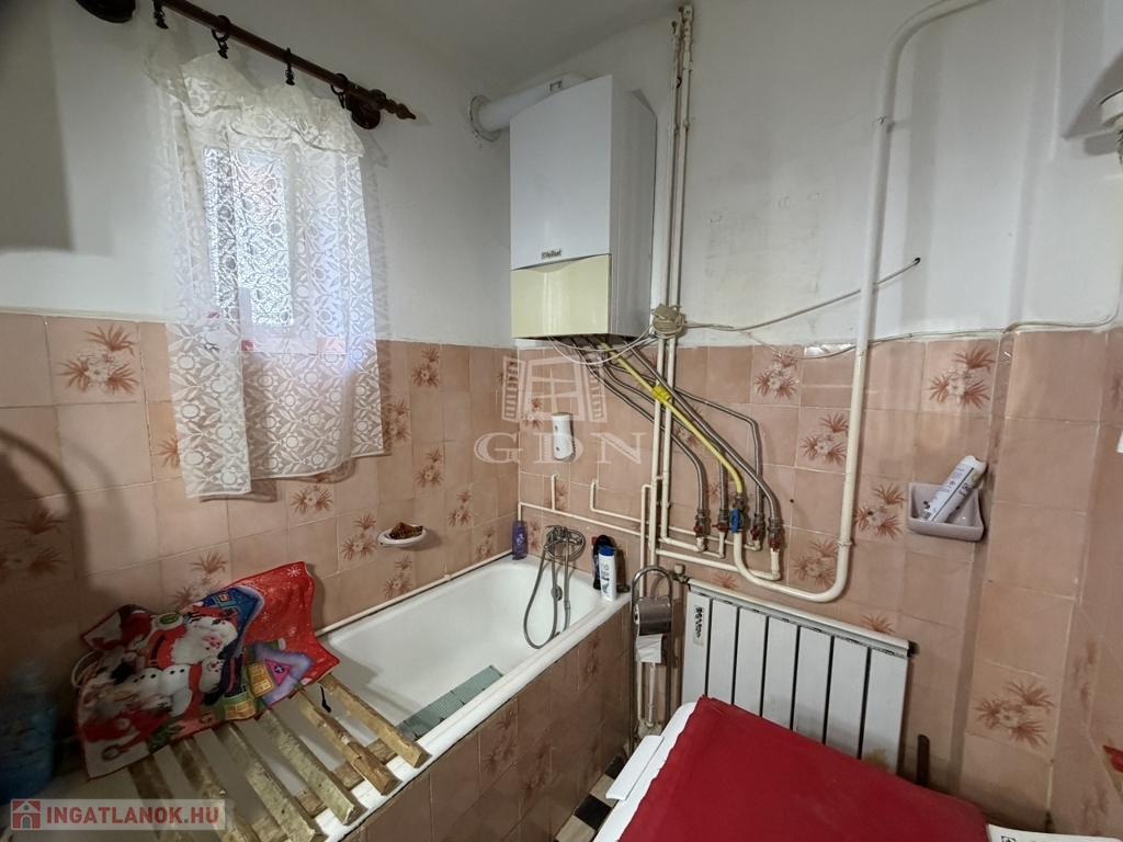 A lakóház belső esztétikai állapota közepes, műszaki tartalma és belső megjelenése azonban igény szerint modernizálható. Az összközműves ház melegéről gázkazánnal üzemelő központi fűtés gondoskodik, radiátoros hőleadókkal, a melegvizet villanybojler biztosítja.