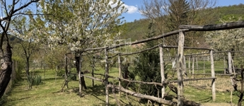 A kert folyamatosan gondozzák, jelenleg is veteményes és termő gyümölcsfák találhatóak benne, locsolása kútról megoldott.