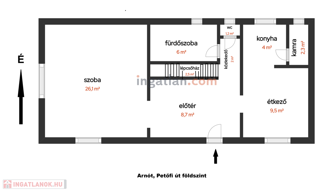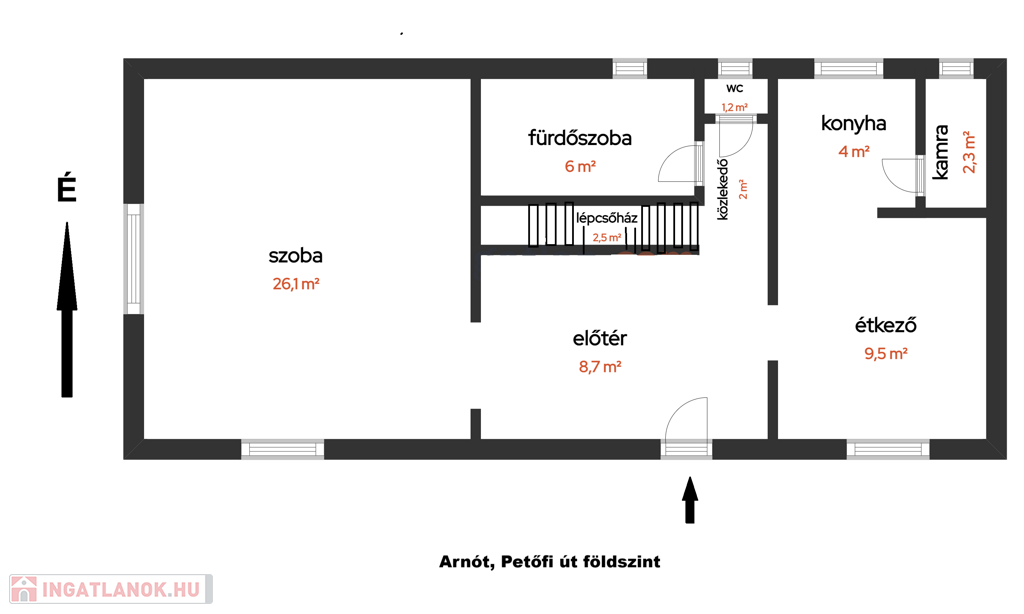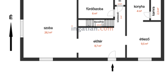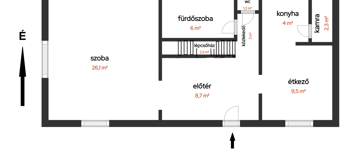 A hátsó épületben szoba, konyha, fürdőszoba, előtér található.
