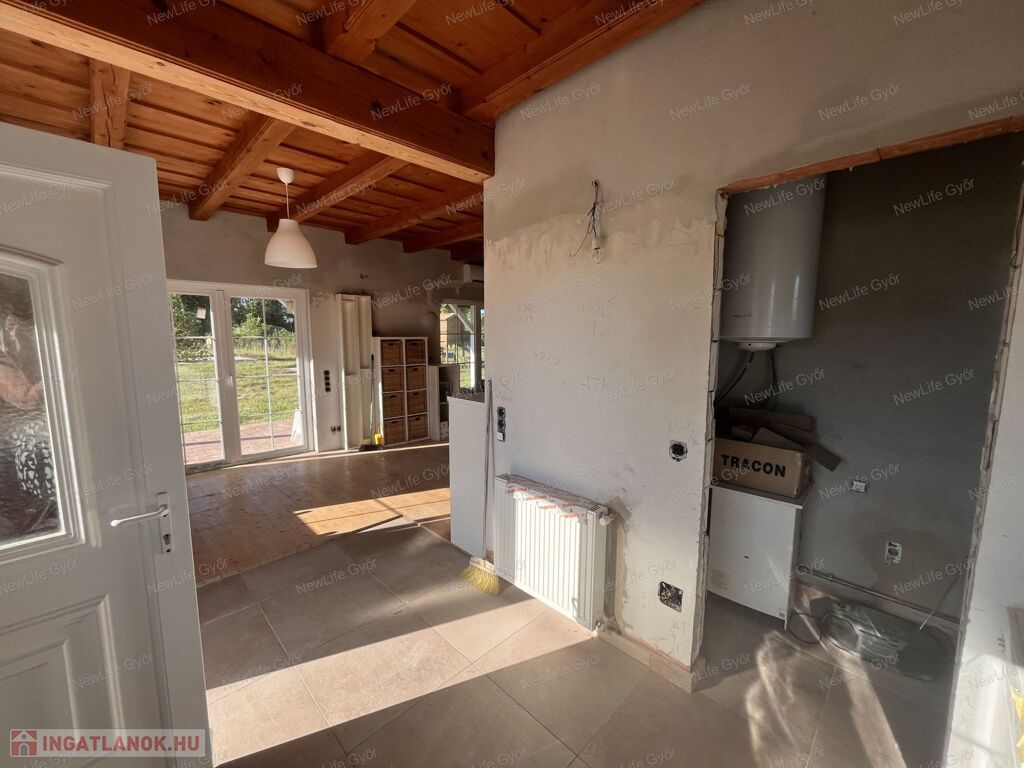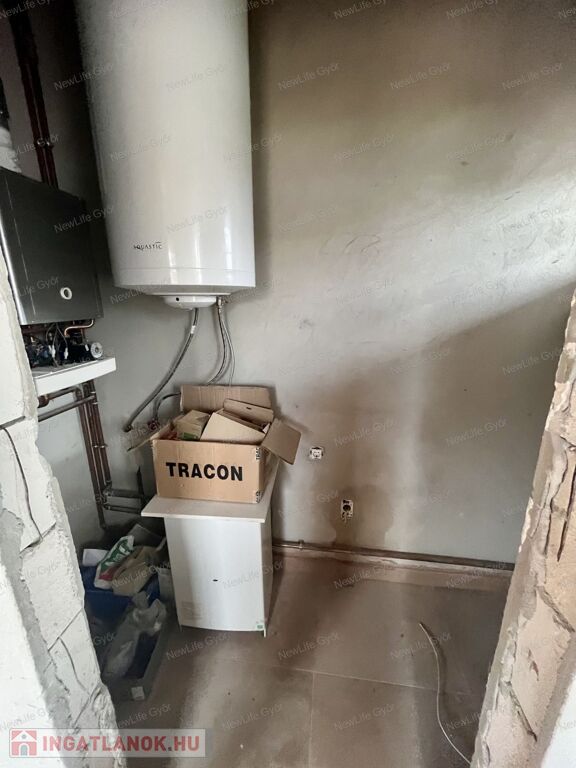 A házba belépve egy amerikai konyhás nappaliba érünk. Onnan nyílik egy háztartási helység, itt kapott helyet a gázkazán és a bojler. A gázkazán bár új, nem Magyarországról hozott, így nem sikerült beüzemelni, így a gázfűtéshez egy új kazánra van szükség.
