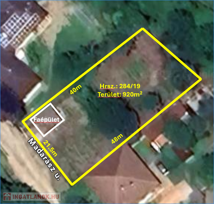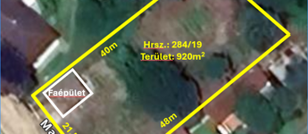Telek 21 nm-es utcafronttal, 30%-os beépíthetőséggel rendelkezik.