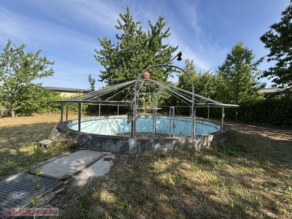 A medencéhez közel van egy szaunának tervezett épület, ami csak arra vár, hogy új tulajdonosa befejezze.