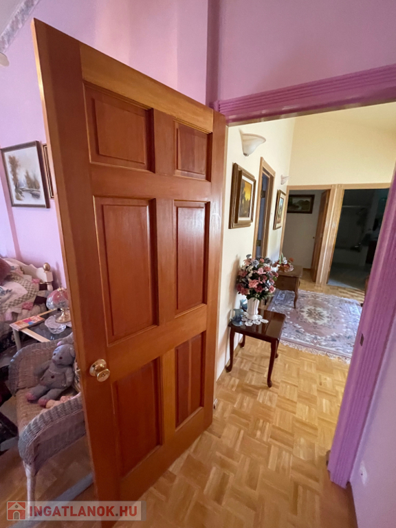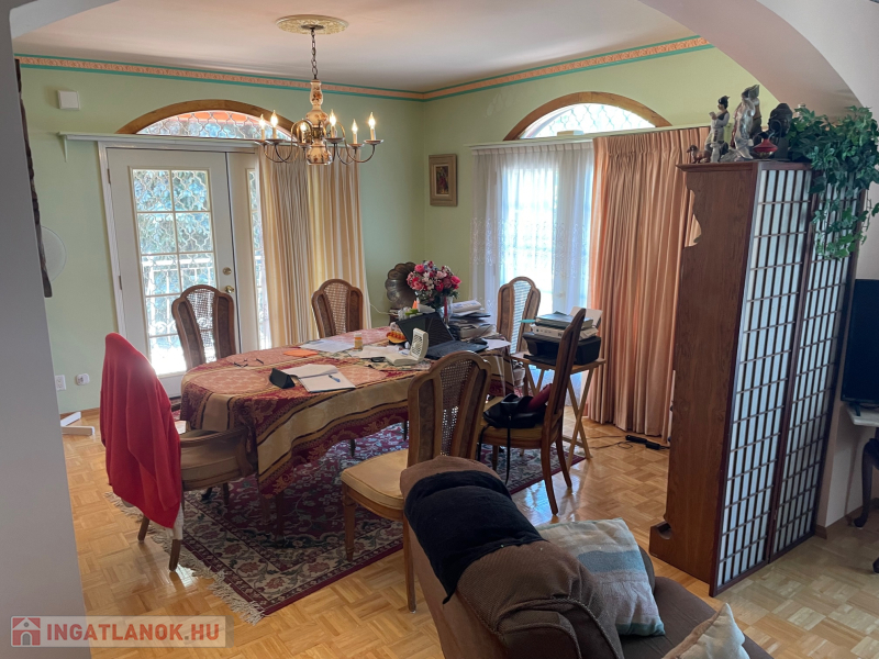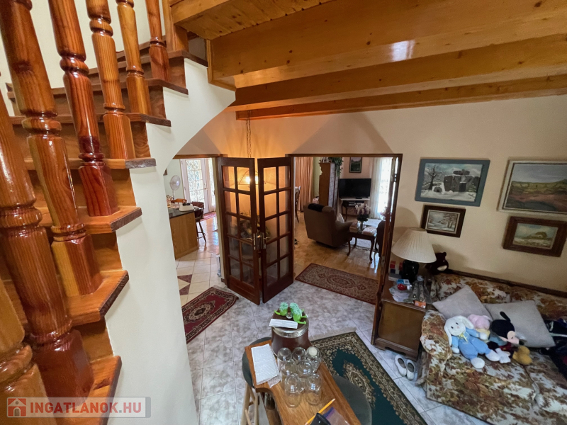 A 2002-ben épült háromszintes ház lakóterülete (teraszok nélkül) 254 m2. Az elegáns, nagypolgári stílusban kialakított otthon minőségi alapanyagok felhasználásával, egyedi megoldásokkal nyűgözi le az oda belépőket.