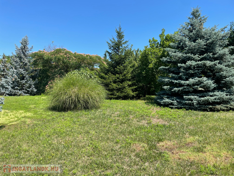 A telek 2542 m2 (45 m utcafronti szélességű), gyönyörűen parkosított, leginkább egy arborétumra emlékeztető. Dísznövényekkel telepített. A kút közepes hozamú jelenleg, de egy tisztítás után ez jelentősen növelhető.
