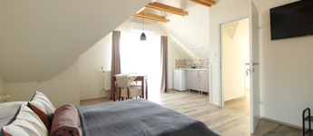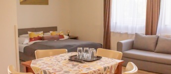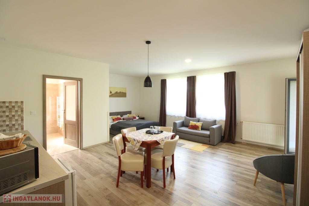 Összesen 9 apartman található az épületben, az egyik önálló bejárattal és teljesen akadálymentesített kiépítéssel.