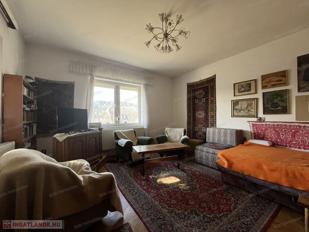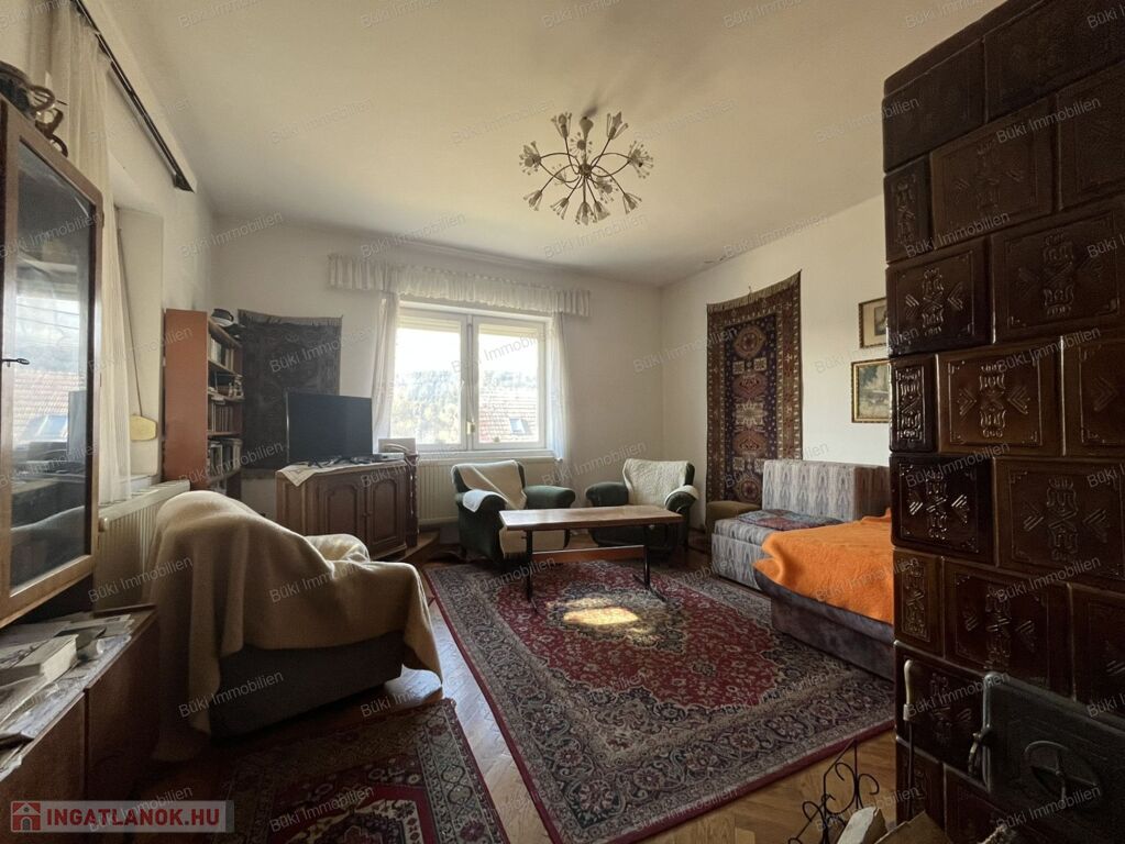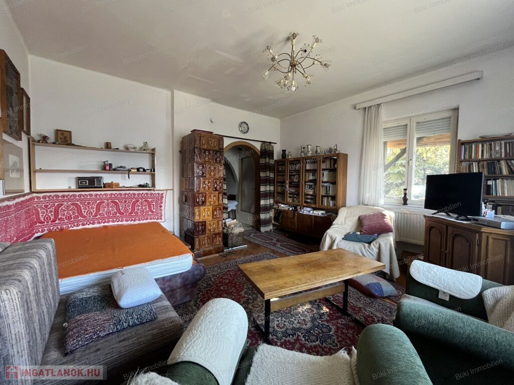 A 150 m²-es, két lakószintes ház egy rendezett utcában áll, ahol még ismerik egymást az emberek, és ahol a hajnal illata nem az autóforgalomhoz kötődik, hanem a Bakony hűvös-párás levegőjéhez. A 2200 m²-es telek szépen elnyúlik a ház mögött, és ahogy végigsétál rajta az ember, egyszer csak ott találja magát a fák között.
