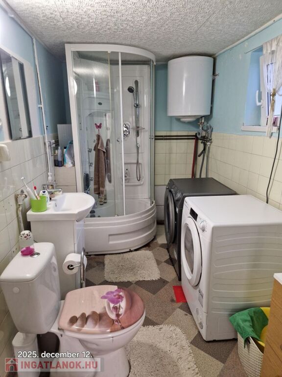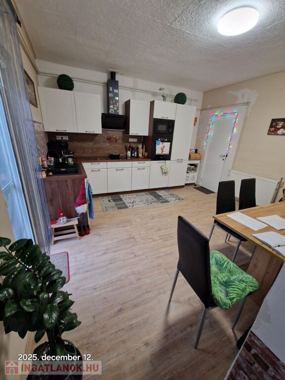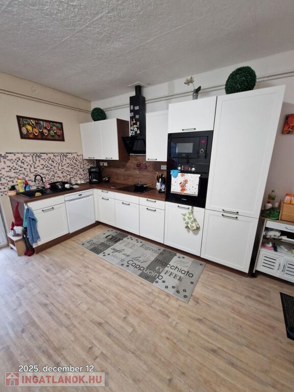 Győrtől mindössze 30 perc távolságra, Bakonyszentlászló központjában, 1917m2-es telken, 103m2 lakóterületből és 28m2es garázsból álló, 3 szobás, 2 fürdőszobás családiház eladó. Az ingatlan két éve több felújításon eset átt. Úgy mint külső homlokzati hőszigetelés, födém szigetelés, nyílászárók cseréje, elektromos hálózat cseréje, hideg és meleg burkolatok cseréje, csatorna és vízhálózat cseréje, új konyhabútor, beépített gépekkel, amik a vételár részétn képezik. A ház fűtéséről egy kondenzációs gázkazán gondoskodik, radiátor hőleadókkal. E mellett rendelkezésre áll egy vegyes tüzelésű kazán illetve egy hűtő-fútő klíma is. A nagy teleken található egy ásott kút, borospince, állattartásra alkalmas ólak valamint a kertben kb. 50 darab gyümölcsfa.