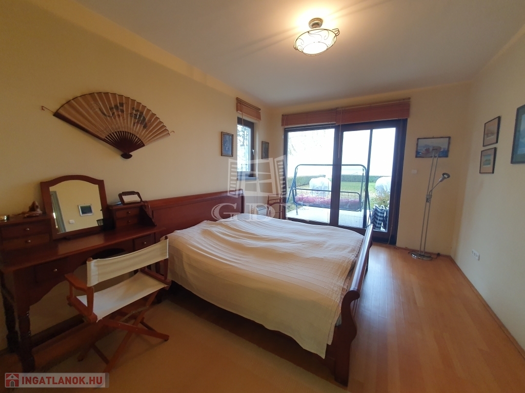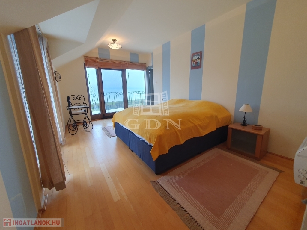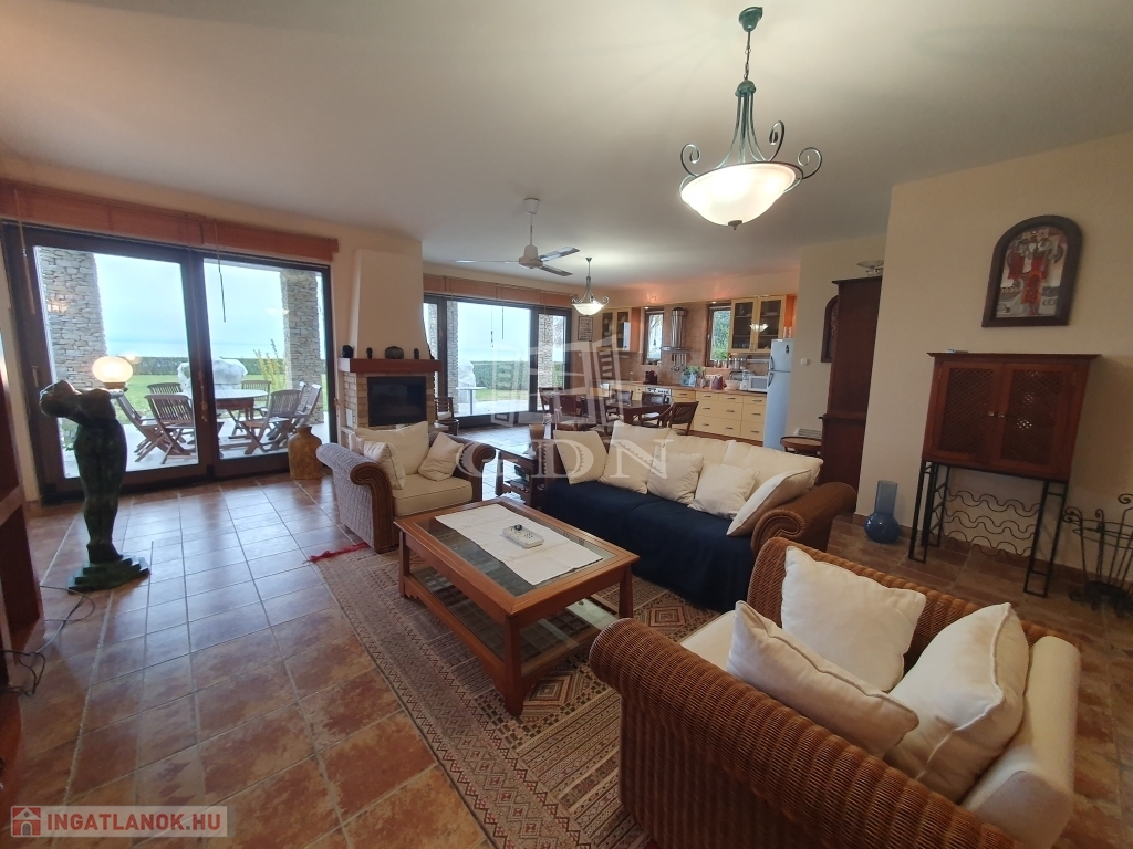Balatonfüredtől 12 km-re, Balatonakali-Fövenyes település exkluzív üdülőparkjában kínálunk megvételre egy zárt lakóparkban található, páratlan adottságokkal rendelkező, tóparti, kétszintes villát.