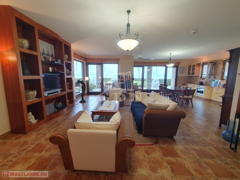 Wir bieten direkt am Plattensee in Balatonakali-Fövenyes, 12 km von die Kulturhauptstadt Balatonfüred entfernt in eine exklusive und abgeschlossenen Wohnpark ein außergewöhnliches, 2 stöckiges Villa mit eigenem Strand!