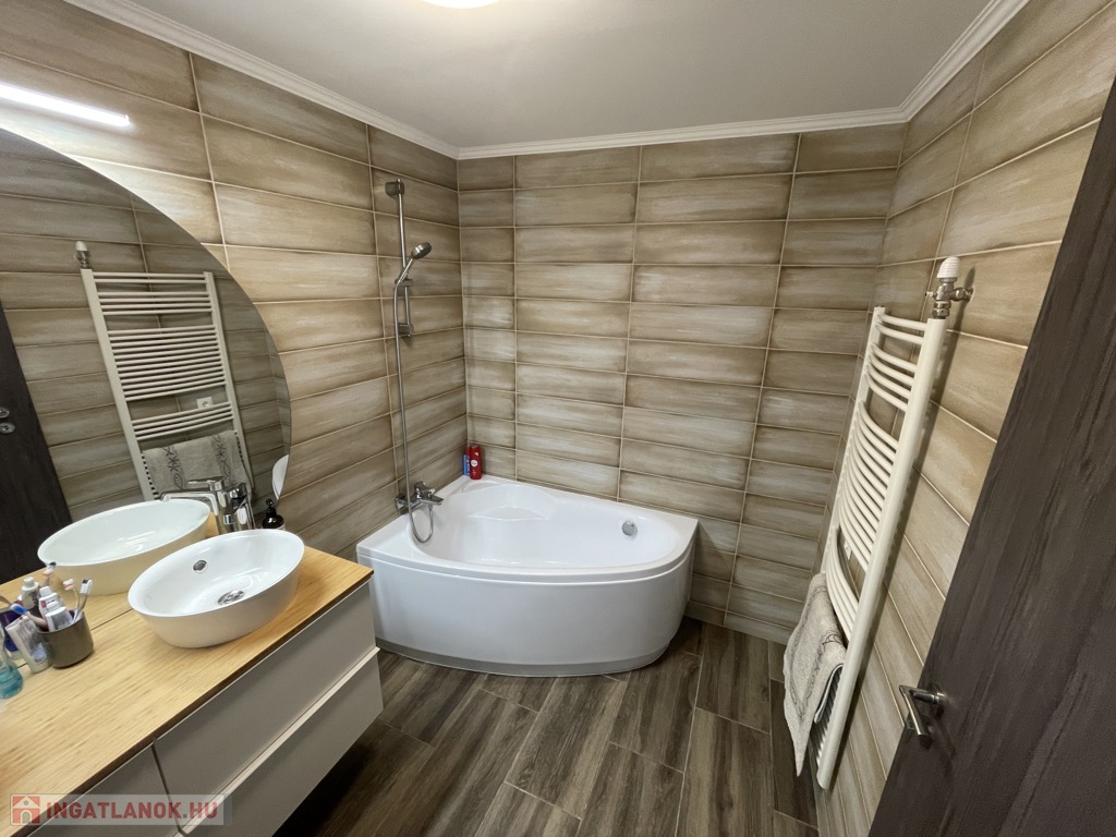 A fűtést gázcirkó biztosítja, alternatívaként vegyes tüzelésű kazán is rendelkezésre áll, a komfortot hűtő-fűtő klímák egészítik ki. Az épület 15 cm-es hőszigeteléssel rendelkezik. A kényelmet elektromos kert- és garázskapu növeli.
