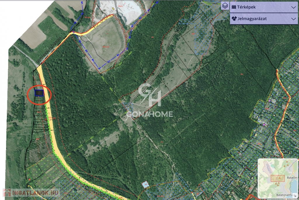 Balatonalmádi peremén, a 82-es főút közelében ELADÓ egy 3385 m²-es, két helyrajzi számon szereplő, egymás mellett fekvő zártkerti terület.
