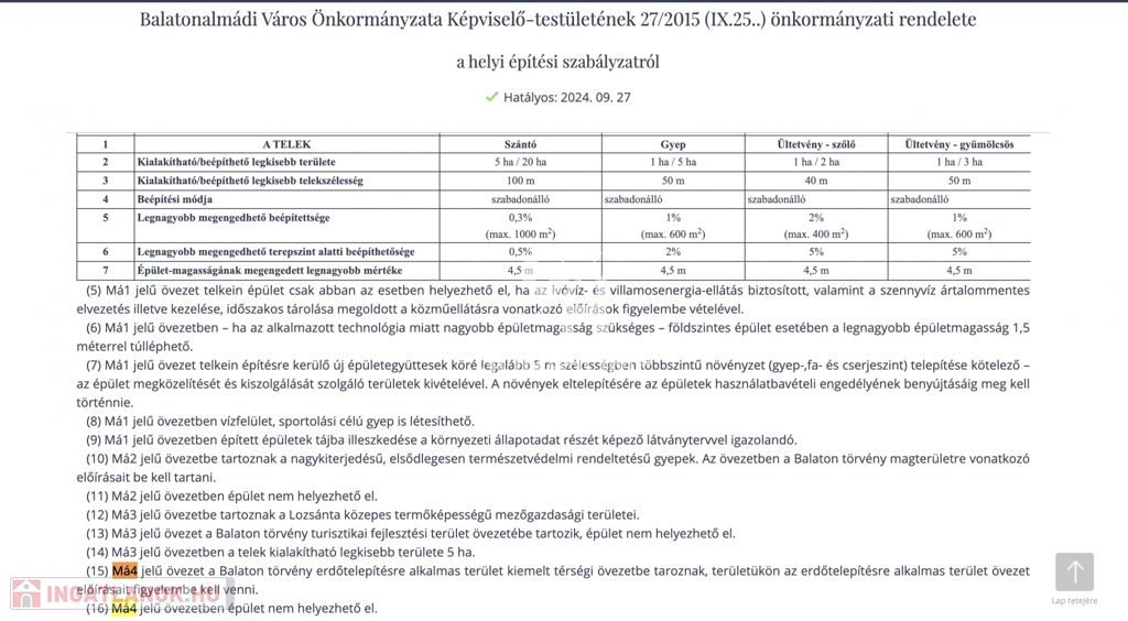 - Művelési ág: Zártkert, besorolása Má-4