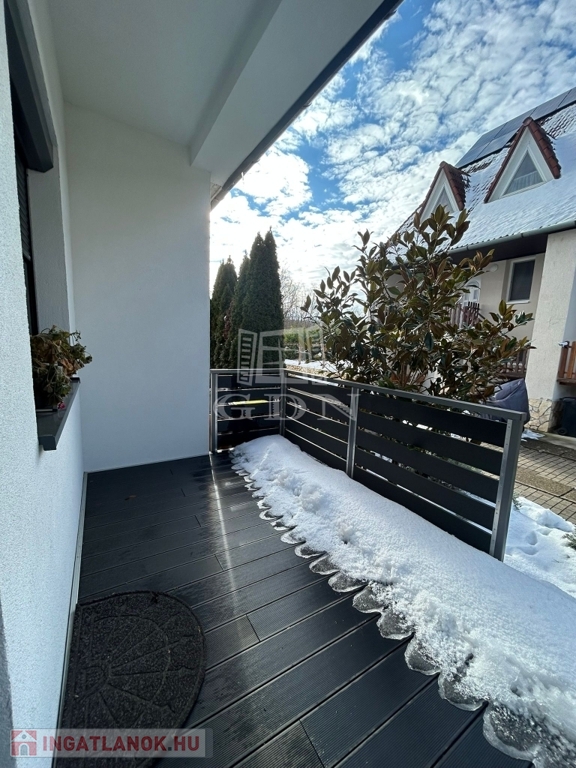 A ház lépcsőn közelíthető meg, a bejáratnál részleges panorámás kilátás élvezhető, illetve egy kisebb terasz rész található. Míg a garázsból belső lépcsőházi kapcsolaton keresztül kényelmesen fel lehet jutni a lakásba.