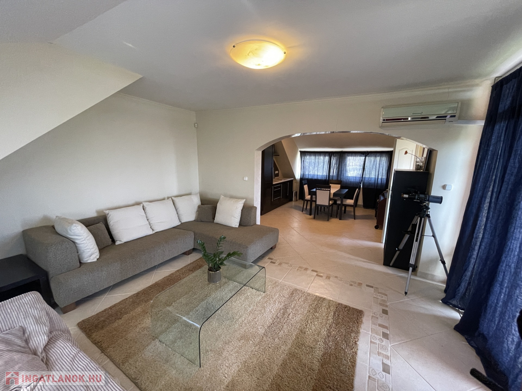 At the highest point of Balatonfüred, where the towers of the Tihany Abbey can be seen from above, we offer a special family home for sale. The property is divided into three separate apartments, accessible via a shared staircase, making it an ideal choice for larger families or multi-generational living. The house features modern gas central heating, which can be regulated on each floor, allowing every resident to adjust the temperature to their needs.