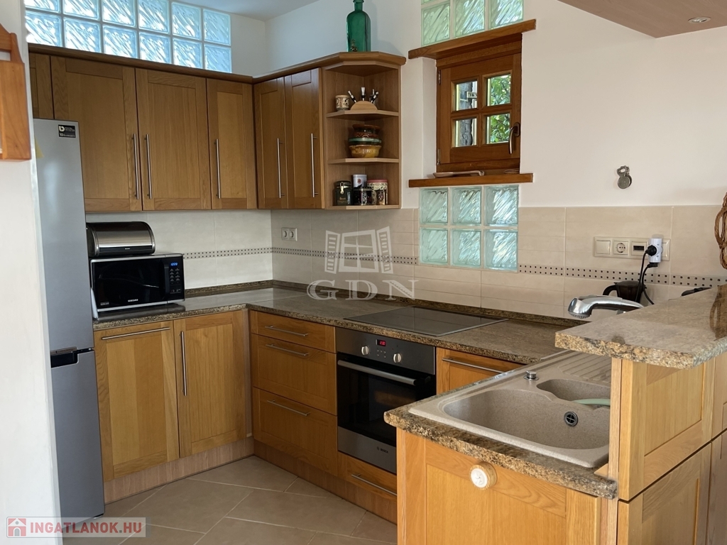 Kiegészítők: cserépkályha, infraszauna, félköríves terasz (25 m²), melynek burkolata felújításra szorul, így lehetőséget biztosítva a további egyéni igények kialakítására.