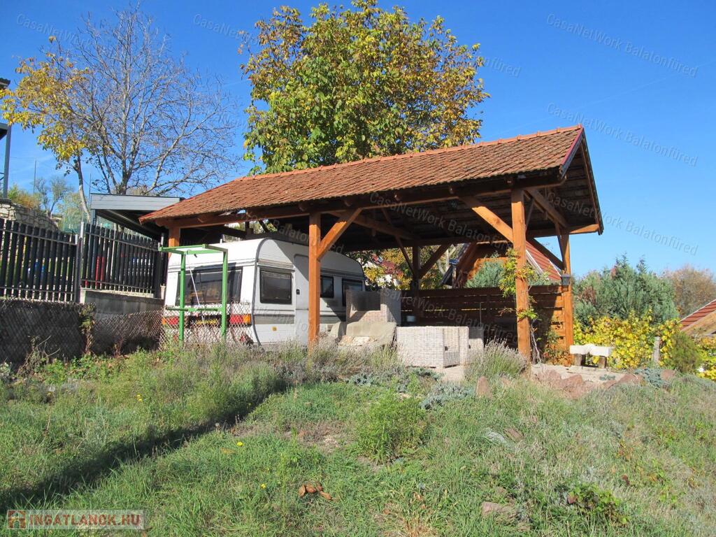 - e telek felett található egy 455 m2-es szintén körbe bekerített panorámás terület, mely derítővel , úszókapuval ellátott, rajta egy lakható lakókocsival, aminek vizét, villanyát az alatta lévő nyaralóból kapja almérővel