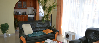 A családi ház dél-nyugati tájolású, egész nap napfényes, világos.