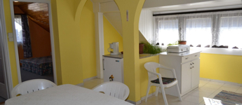 A konyhának és a nappalinak egyaránt van terasz kapcsolata.