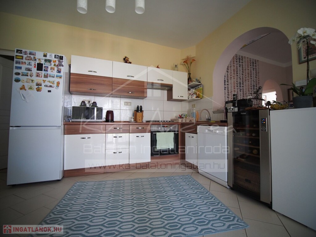 Az ingatlan csendes utcában található Balatongyörökön, kb 1200 m-re a strandtól, két percre autóval, vagy egy kellemes 15 perces sétára. A közelben kisebb bevásárlási lehetőség van. Kb 7km-re van Keszthelytől, ahol aztán minden más nagyobb bevásárlási lehetőség akad, Tesco, Interspar stb, valamint kórház, iskolák, óvodák. Egyébként itt van óvoda. Iskola már a szomszédos faluban, Vonyarcvashegyen is van, vagy Keszthelyen létezik több alternatíva. Akit érdekel jelezze és szívesen elmondom.