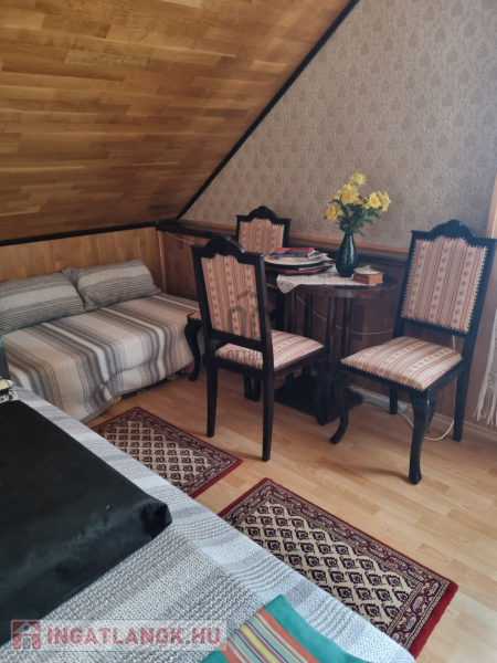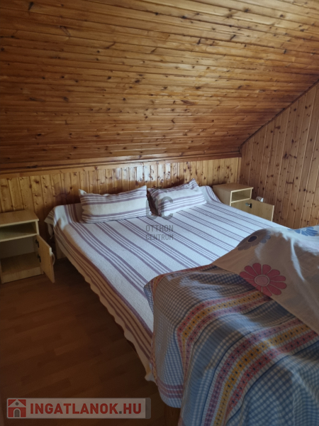 - fszt. - nappali, hálószoba, főzőfülke, étkező, 2 db zuhanyzós fürdő WC-vel. A falépcső a nappaliból vezet fel a tetőtérbe.