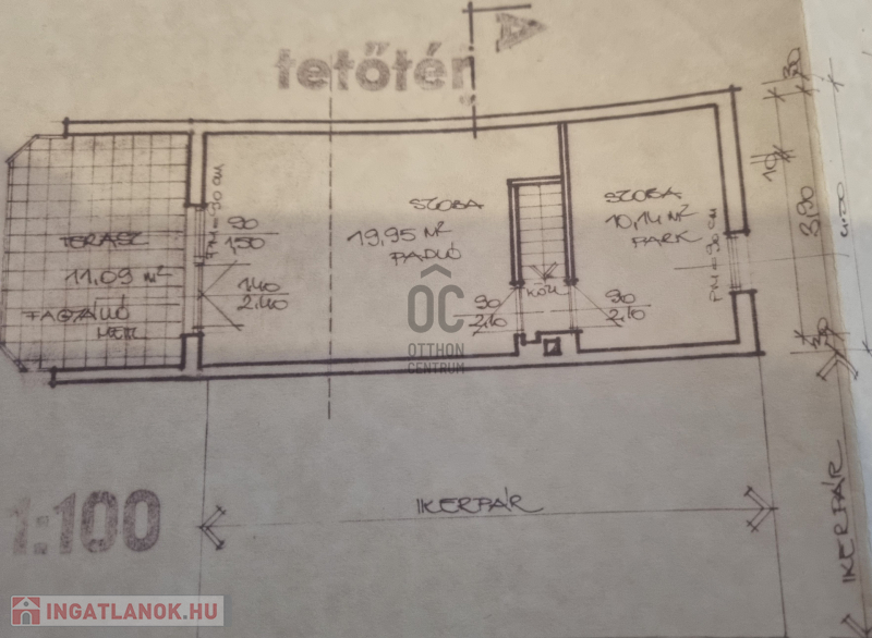 - tetőtérben - egy 20 és egy 10 nm-es szoba, 11 nm-es fedett terasz.