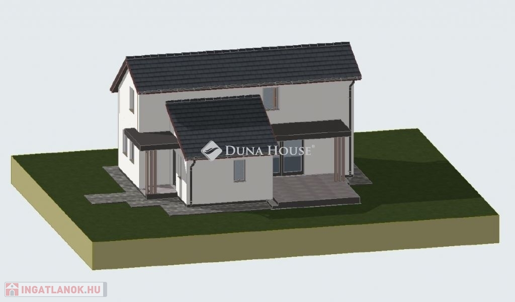 A földszinti alapterülete 43m² +18m² terasz, az emeleti alapterület 32m².