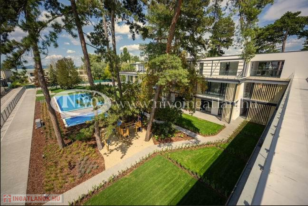 A terület 5336 m2-es, bekerített, ősfás, parkosított telek, balatoni panorámával. Az itt lakók kényelmét felnőtt-és gyermekmedence is szolgálja.