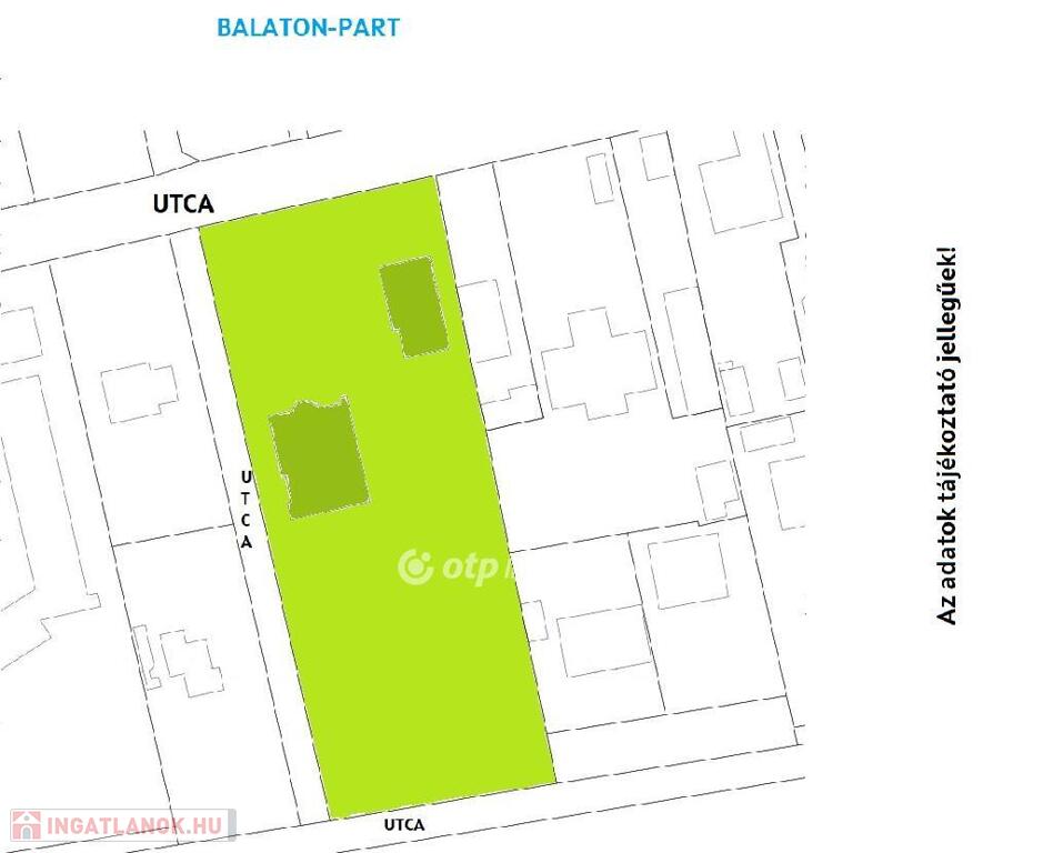 Balaton déli parton, Balatonlellén, 3468 m2 telek 450 + 200 m2 üdülőépülettel eladó. Az ingatlan a Balaton-parttól, szabad strandtól 140 méterre, gyalog 2 percre helyezkedik el. A két épületből álló üdülő felújítást követen kiváló lehet közel 50 fő elszállásolására is. A telek üdülőházas övezetben található, szabadon állóan 20%-ig beépíthető, legnagyobb építménymagasság 7,5 méter, legkisebb zöldfelület 40%. A körülkerített, összközműves terület 3 oldalról közút csatlakozással rendelkezik, akár több telekre is osztható lehet. A területen 35-40 új üdülőegység építhető, két teljes értékű szinten plusz egy penthouse szinten nagy teraszokkal egységenként átlagosan 50 m2-es nettó területtel. Bővebb információért keressen telefonon!