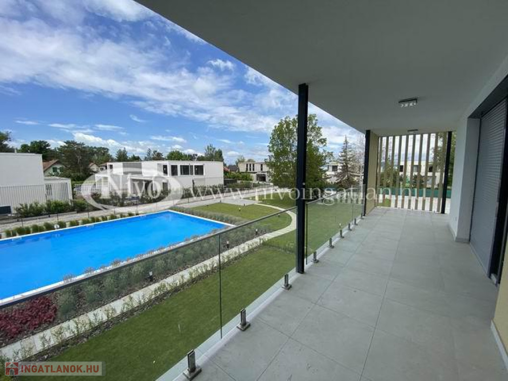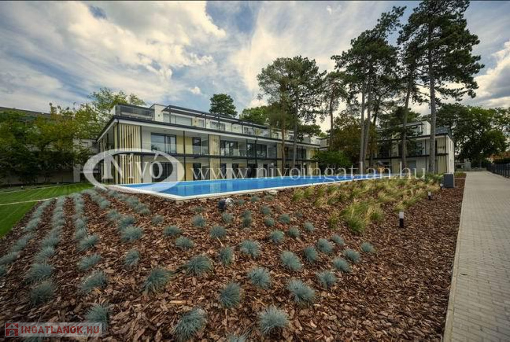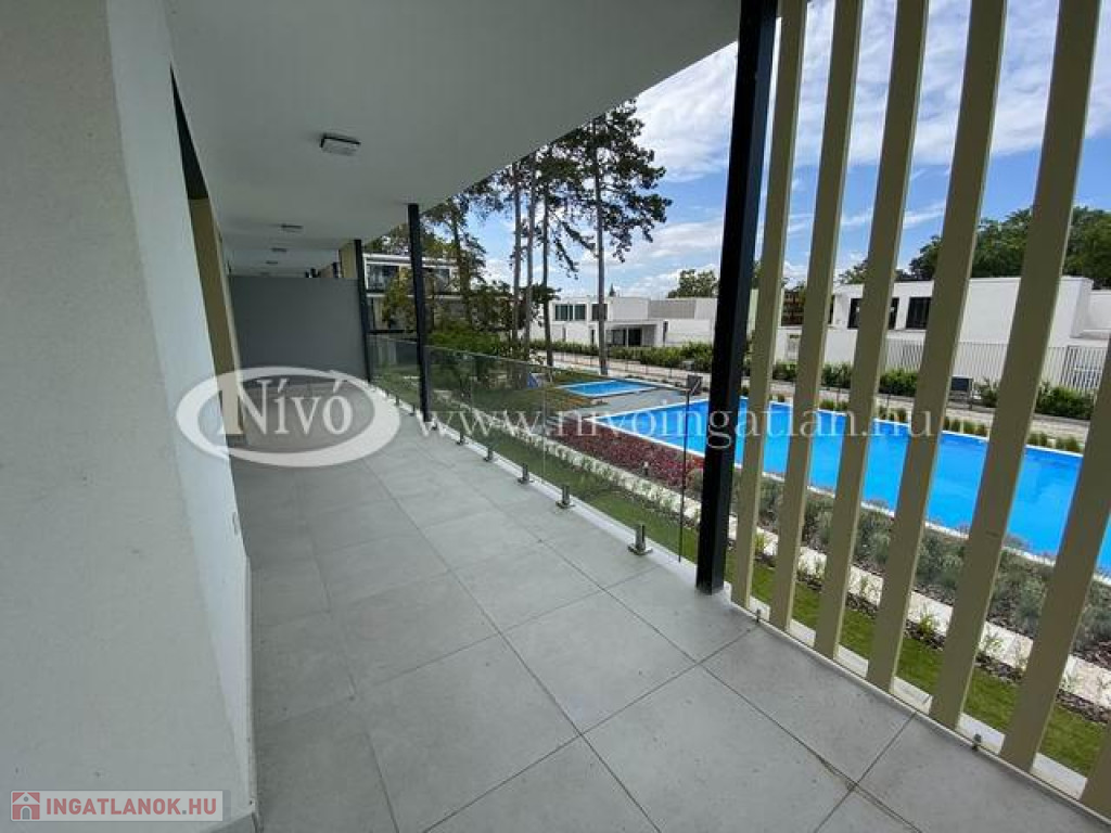 A lakás 29 lakásos, A+ energia besorolású társasházban található, a 1. emeleten. Az épület tervezésénél a funkcionalitás mellett fő szempontok voltak az egyszerűség, az elegancia, a harmónia és a modernitás, ezek mellett a kedvező megközelítés, tájolási és panoráma adottságok kihasználása is. A lakóparkban felnőtt illetve gyermek medence is kialakításra került. Az ingatlan téglából épült, szigetelt, lapos tetős épület.
