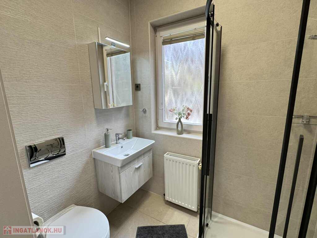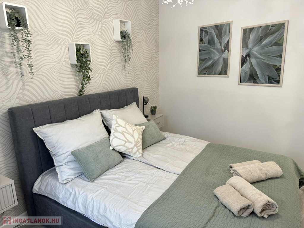 2026.06.15.-ig!!! Balatonlelle központjában, a Balaton parttól 100 m-re, gyönyörű zöldövezeti környezetben rendezett társasház 1. emeletén lévő 51 m2-es felújított iényes lakás kiadó. A lakásban egy szoba + amerikai konyhás nappali amelyből 10 m2-es terasz nyílik, előszoba, fürdőszoba-zuhanyzó-wc helyiségek találhatóak, a fűtése és a melegvíz ellátása kombi gázkazánnal megoldott, továbbá légkondícionáló is van felszerelve, valamint tartozik hozzá az épület zárt udvarában 1 szgk. részére beállóhely is. A lakás teljesen felszerelt, wifi és mindig tv van! A lakást a tulajdonosa legfeljebb 2 felnőtt részére kívánja kiadni, a dohányzás és a kisállat tartása nem engedélyezett! Bérleti díj: 140.000.- Ft/hó + rezsi + 2 havi kaució