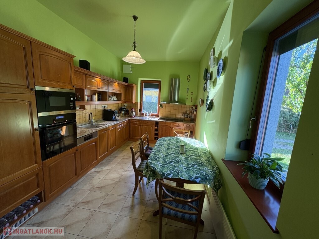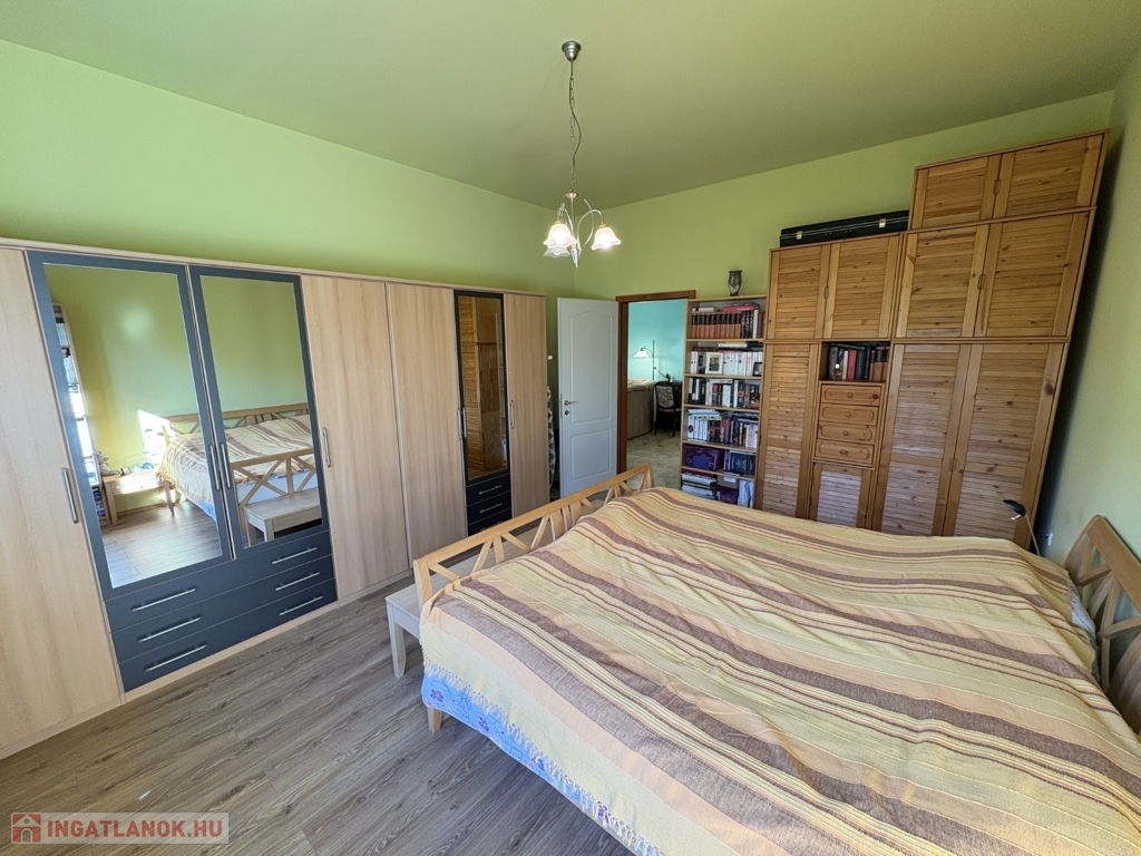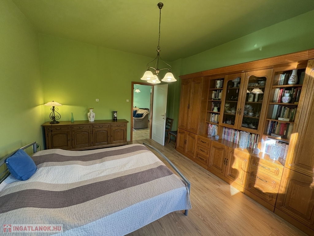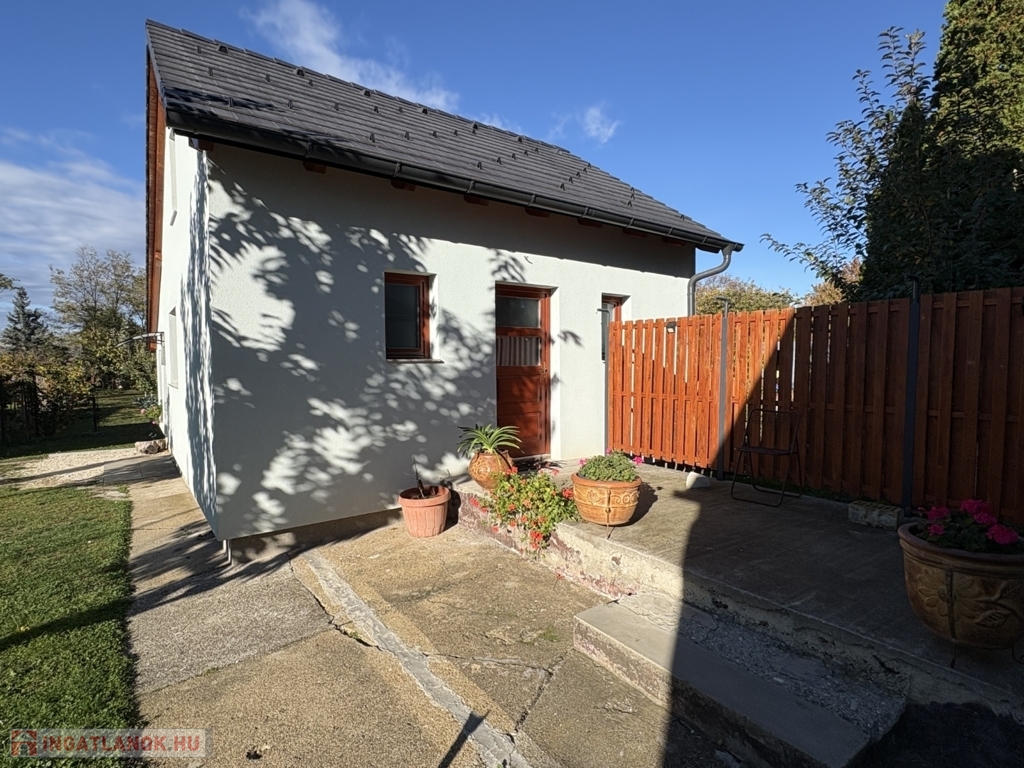 Balatonszárszón 96 m2-es nagyon jó műszaki állapotú családi ház, 44 m2-es melléképülettel, gondozott telekkel eladó. A lakóházban előszoba-nappali, 2 szoba, közlekedő, konyha-étkező beépített konyhabútorral és gépekkel (AEG micro és mosogatógép, elektromos főzőlap és elszívó, Electrolux sütő, és hűtőszekrény), fürdőszoba, wc pissoirral, kamra helyiségek kerültek kialakításra, valamint a közlekedőből nyílik a lejárat a 10 m2-es pincébe is. A lakóház fűtése NOBO elektromos fűtőpanelekkel és a nappaliban kandallóval megoldott, a melegvíz ellátást villanybojler biztosítja. Az épület energetikai korszerűsítésen esett át, amely során a tulajdonos a homlokzatra 15 cm-es BAUMIT hőszigetelést, a padlás födémre 20 cm kőzetgyapot szigetelést rakatott, új borovi fenyő nyílászárókat építtetett be - az ablakokra fémredőnyt rakatott fel, valamint vízszűrőt és riasztót is felszereltetett. A rendezett udvaron 44 m2-es belülről részben már felújított, kívülről szintén hőszigetelt melléképület-kisház áll új Terran Zenit , amelyben egy 1 szoba-konyhás udvari lakrész kialakítható, valamint 1 személyautó részére garázs és tároló is található. Az ingatlan a kitűnő lokációja és a kialakítása miatt akár nyaraltatásra is alkalmas lehet, az autópálya 5 percre van, élelmiszerboltok a közelben megtalálhatók, a strand is csupán 800 m-re van. Telek: 1.429 m2 (155)