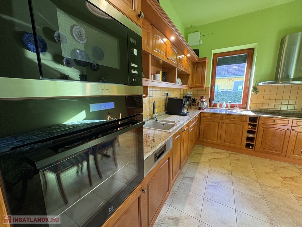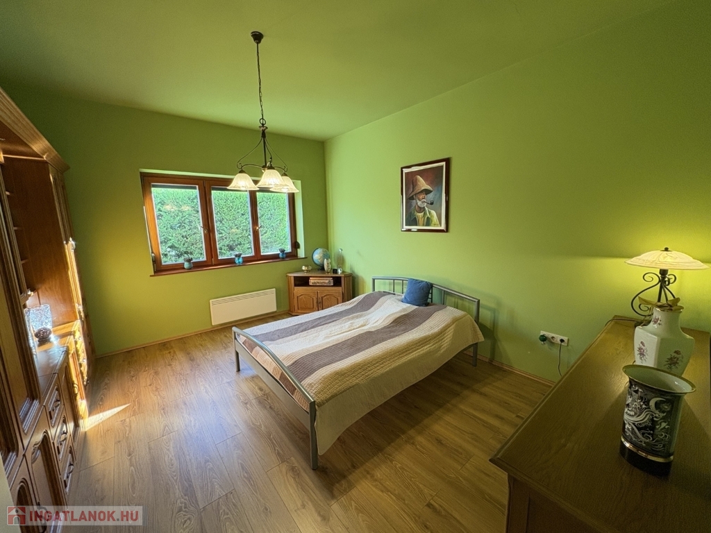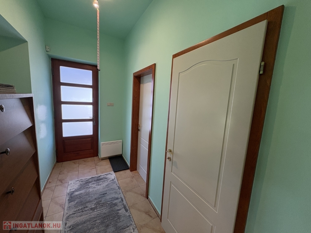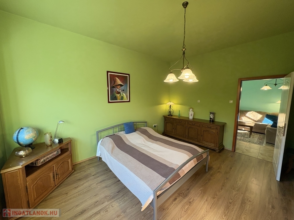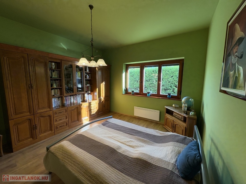 Balatonszárszón 96 m2-es nagyon jó műszaki állapotú családi ház, 44 m2-es melléképülettel, gondozott telekkel eladó. A lakóházban előszoba-nappali, 2 szoba, közlekedő, konyha-étkező beépített konyhabútorral és gépekkel (AEG micro és mosogatógép, elektromos főzőlap és elszívó, Electrolux sütő, és hűtőszekrény), fürdőszoba, wc pissoirral, kamra helyiségek kerültek kialakításra, valamint a közlekedőből nyílik a lejárat a 10 m2-es pincébe is. A lakóház fűtése NOBO elektromos fűtőpanelekkel és a nappaliban kandallóval megoldott, a melegvíz ellátást villanybojler biztosítja. Az épület energetikai korszerűsítésen esett át, amely során a tulajdonos a homlokzatra 15 cm-es BAUMIT hőszigetelést, a padlás födémre 20 cm kőzetgyapot szigetelést rakatott, új borovi fenyő nyílászárókat építtetett be - az ablakokra fémredőnyt rakatott fel, valamint vízszűrőt és riasztót is felszereltetett. A rendezett udvaron 44 m2-es belülről részben már felújított, kívülről szintén hőszigetelt melléképület-kisház áll új Terran Zenit , amelyben egy 1 szoba-konyhás udvari lakrész kialakítható, valamint 1 személyautó részére garázs és tároló is található. Az ingatlan a kitűnő lokációja és a kialakítása miatt akár nyaraltatásra is alkalmas lehet, az autópálya 5 percre van, élelmiszerboltok a közelben megtalálhatók, a strand is csupán 800 m-re van. Telek: 1.429 m2 (155)