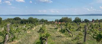 Gyönyörű balatoni örök panorámás, 6295 m2 -es külterületi saroktelek remek adottságokkal rendelkezik, melynek megközelíthetősége tökéletes két oldalról is aszfaltút biztosítja. A telek kb. 57 m utcafronti szélességű, enyhén emelkedő kb. 100 m hosszú, ami az épülő ház szempontjából kiváló adottságokat jelenthet. Elhelyezkedése és panorámája a Balatonra csendes, természetközelsége páratlan. Természet és a nyugalom ötvözete. Kiváló minőségű szőlőtermő hely.