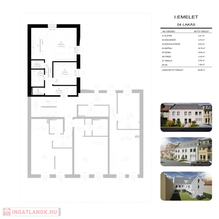 A hirdetésben szereplő 1. emeleti, lakás 55 m2-es.