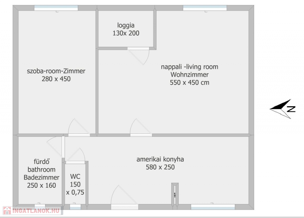 Az ingatlan jó elosztású, különnyíló szobákkal és amerikai konyhával.