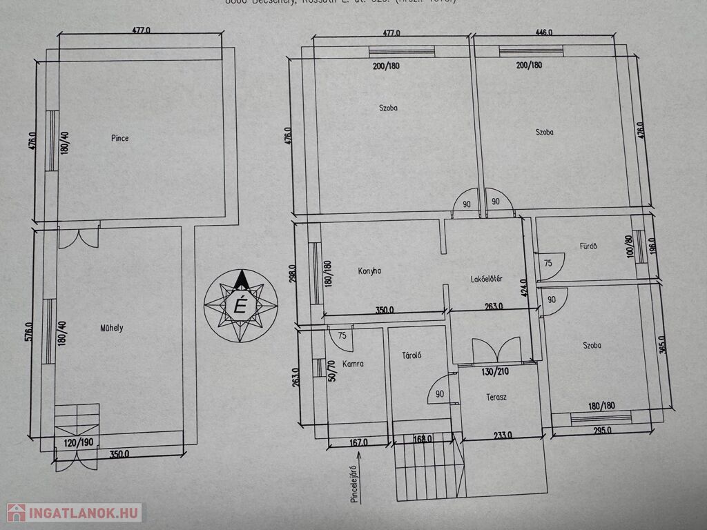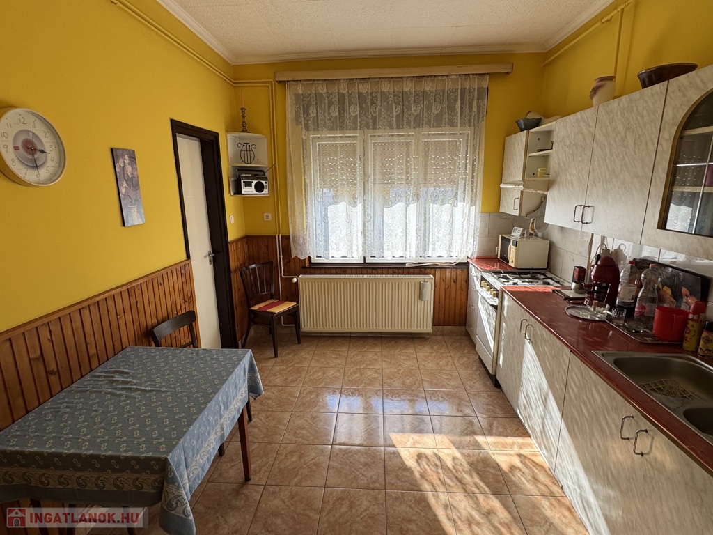 • Helyiségek: 3 külön bejáratú szoba + hall + konyha + kamra + fürdő + WC