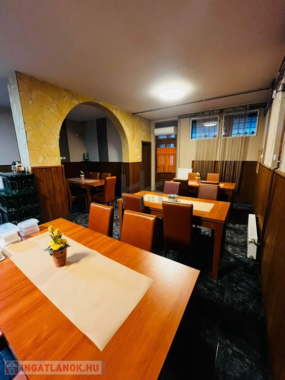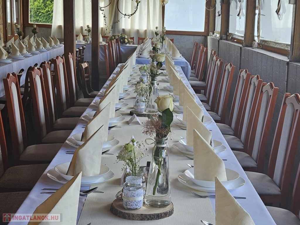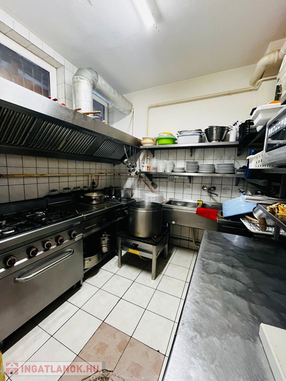 - az alsó szinten, ( 98 m2 ) jelenleg a vendégtér, konyha, előkészítők , mosdók és egy nagy terem van kialakítva ( ami egybenyitható a fedett és zárt terasszal )