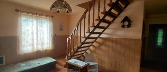 A nappaliból induló lépcső az emeletre vezet, ahol három további szoba, egy tágas folyosó és egy fürdőszobának kialakítható helyiség várja új gazdáját.