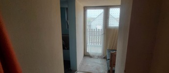 A fa nyílászárók és a betonozott aljzatok stabil alapot adnak a felújításhoz, amely során a ház újra régi fényében ragyoghat.