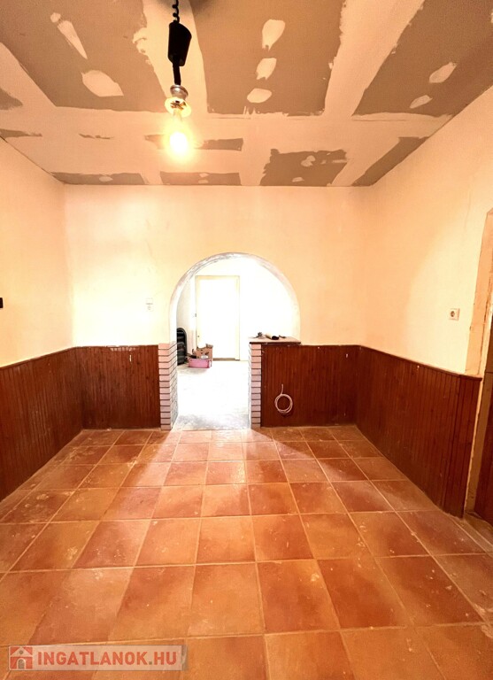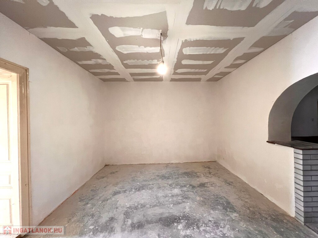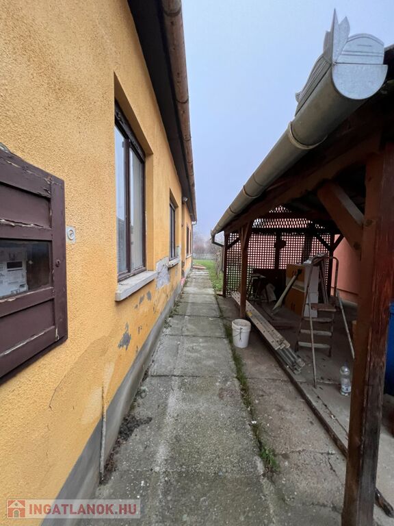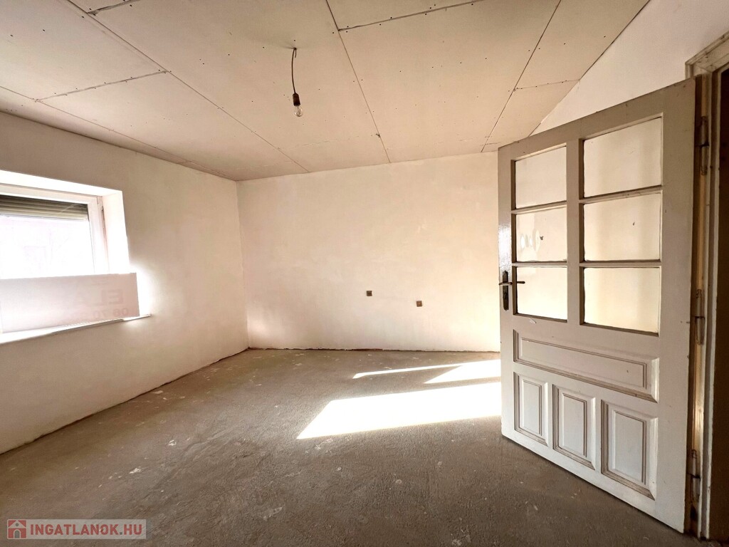 Az ingatlan jellemzői: A főépület 70 m²-es területén a terek praktikus elrendezést kínálnak: a zárt folyosóról nyílik a fürdőszoba WC-vel, a nappali, amely étkezővel kapcsolódik, valamint innen érhető el a hálószoba és a konyha spájzzal, mely a fő életteret egészíti ki. Az ingatlan nyílászárói jellemzően fából készültek, az utcafronti szoba ablakait azonban új, műanyag nyílászáróra cserélték. A pince lejárata is a folyosóról nyílik.
