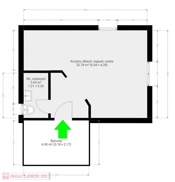 - Terasz: 6,9 m²