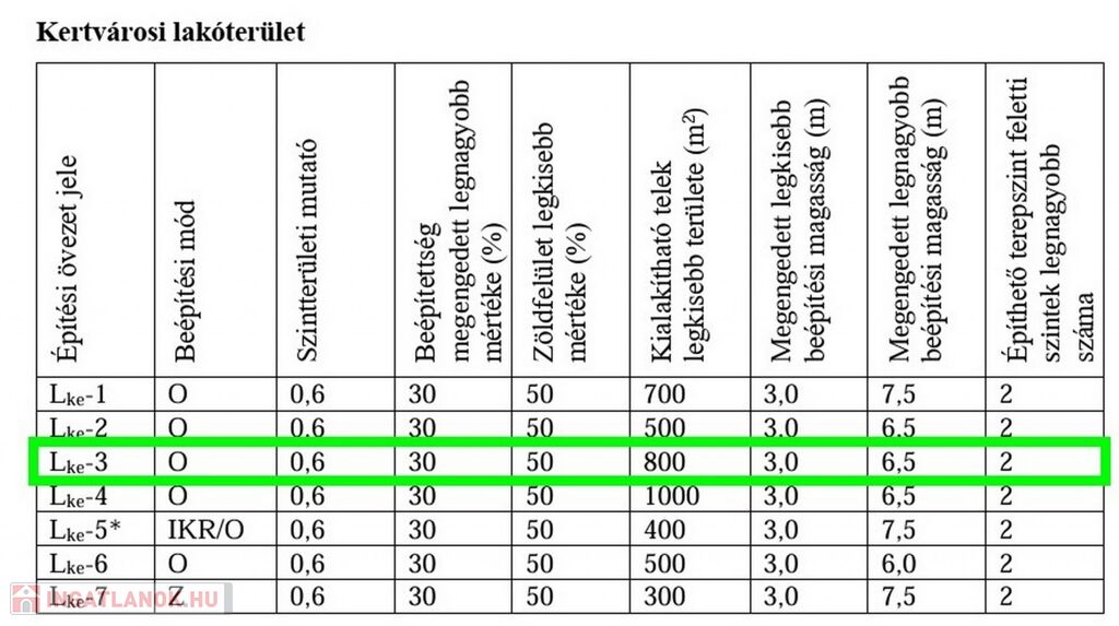 - Beépíthetőség: 30%