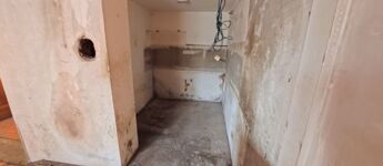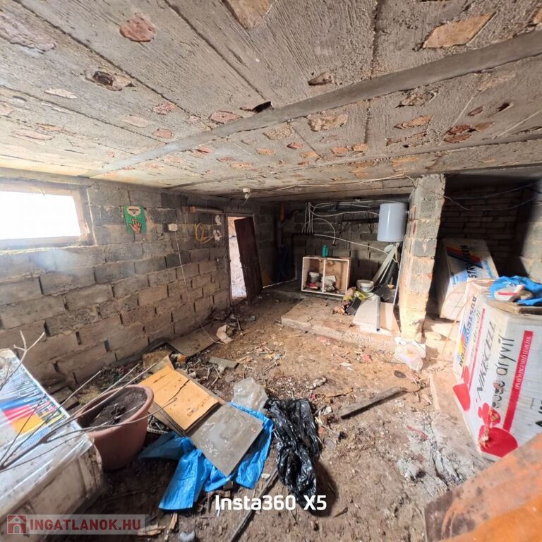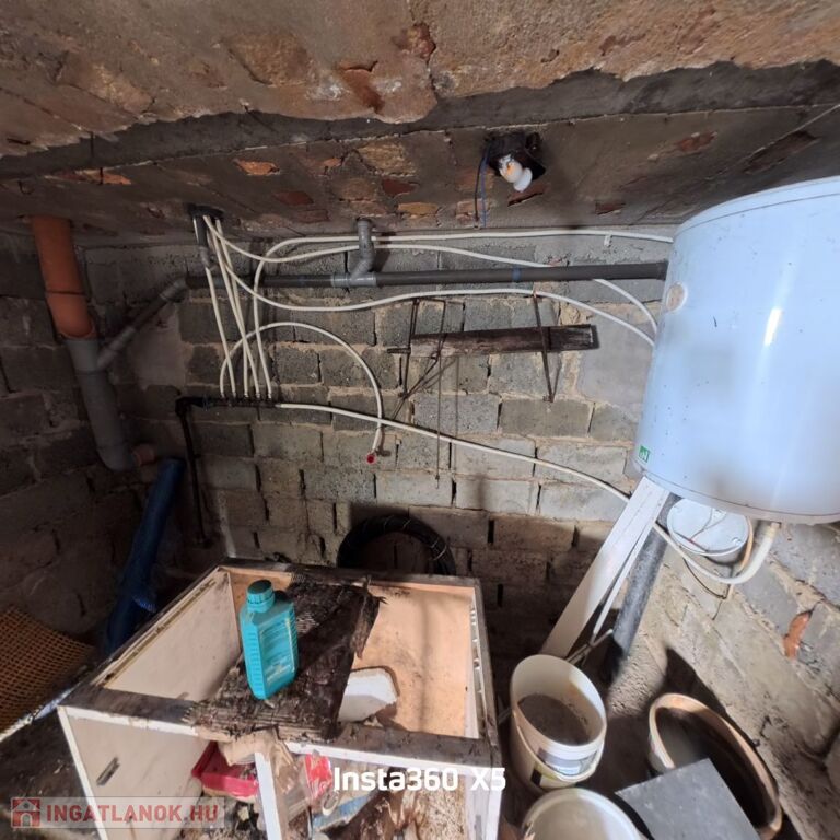 A 25 m²-es pince jelenleg tárolásra alkalmas, itt kapott helyet a villanybojler is.